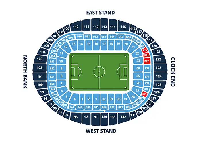 All our hospitality packages include Match or Event Seats. The location of your seats or box are highlighted in red on the venue plan below.